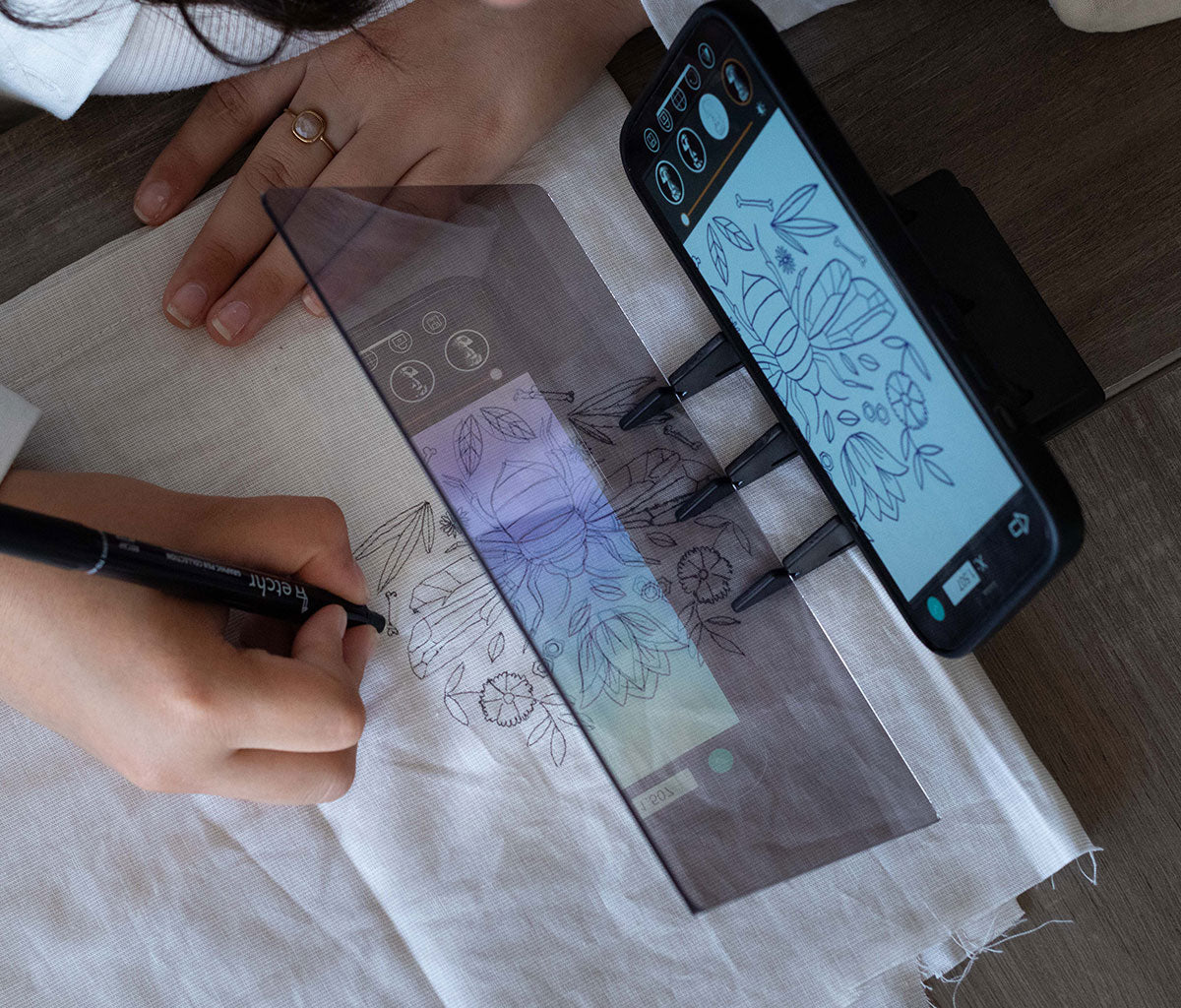 Bring images from your digital device to life. Upload any picture from your own device and project the image onto any surface using the Etchr Mirror.