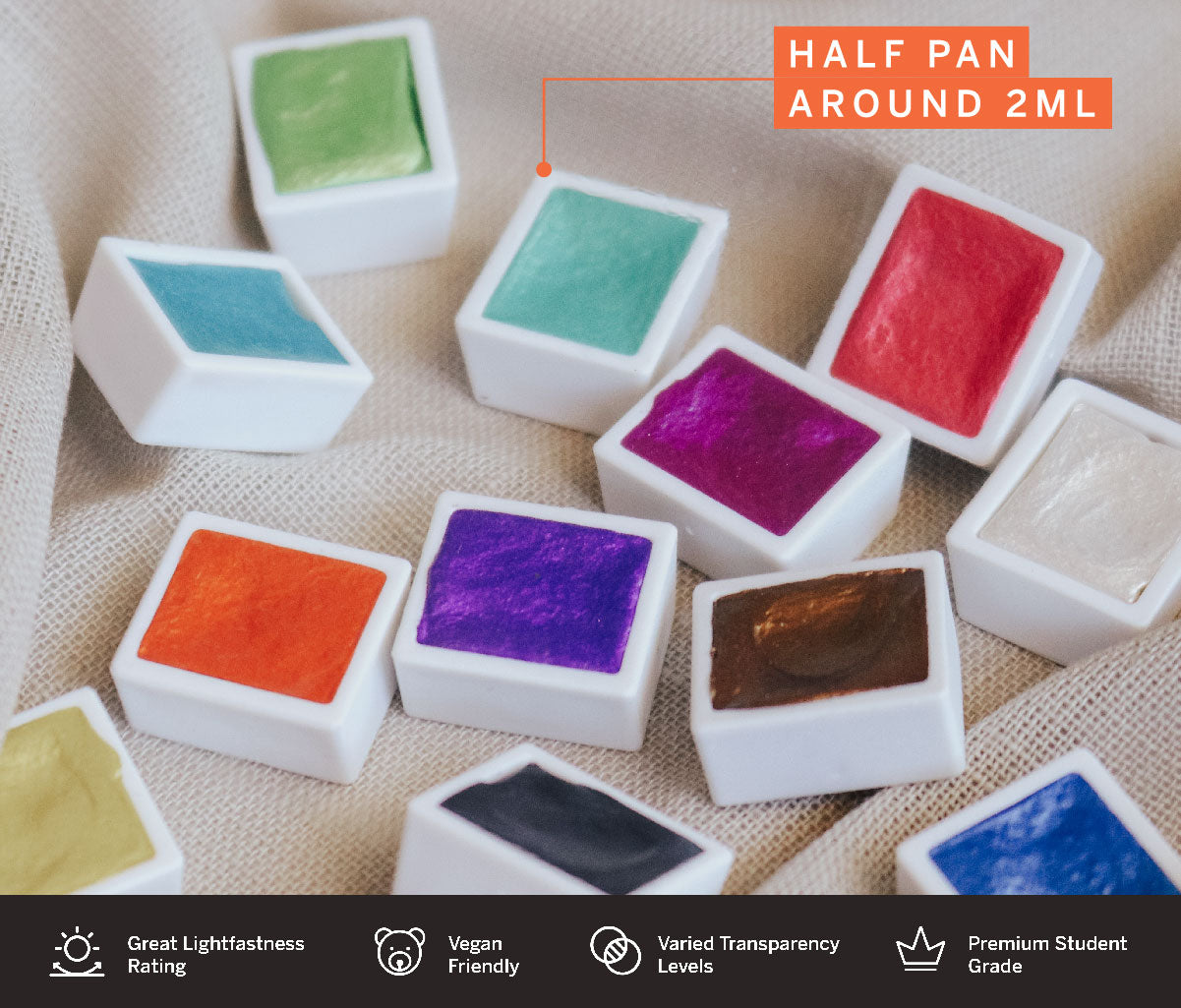 Pearlescent Watercolours: Versatile 12 Half Pan Set