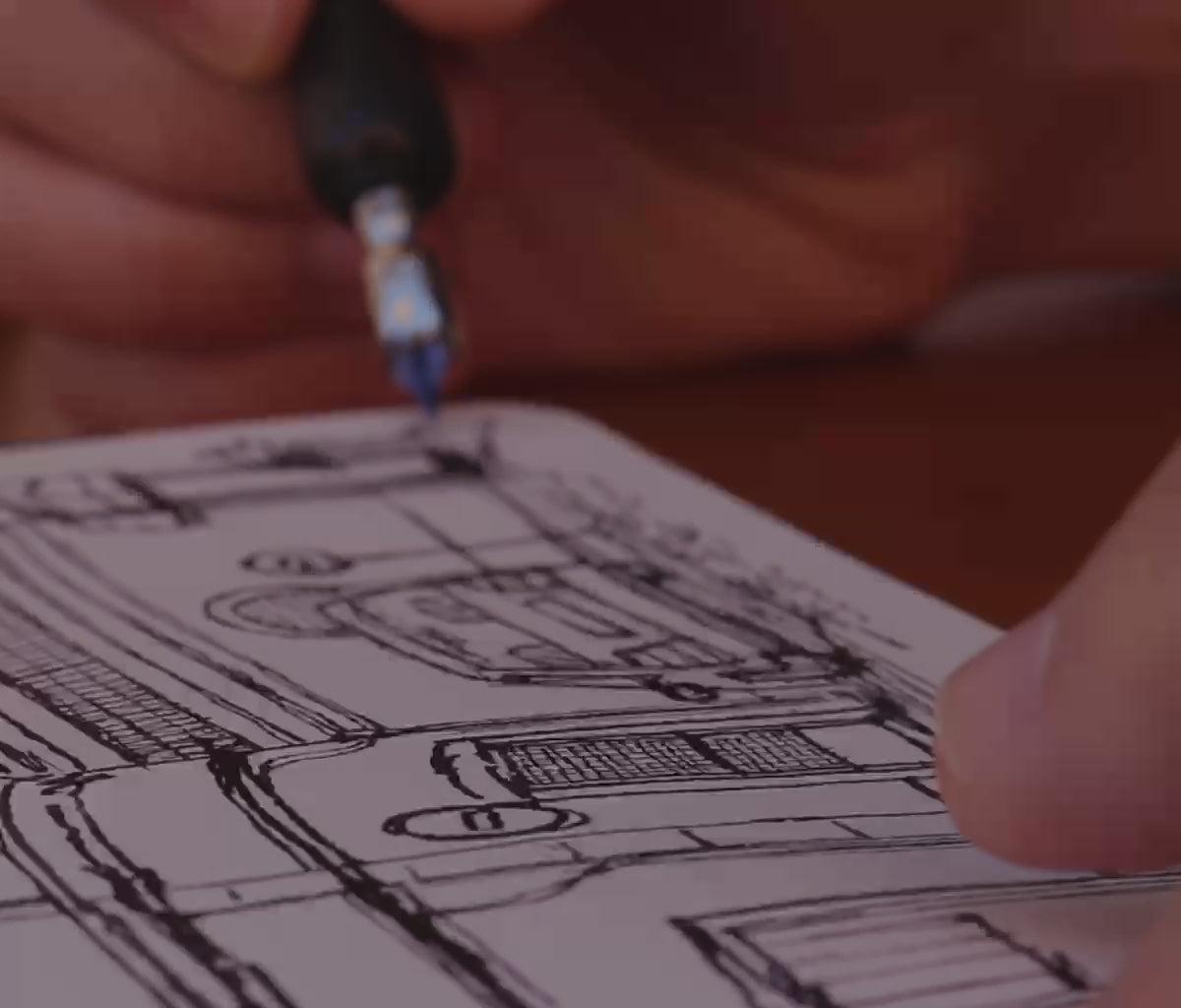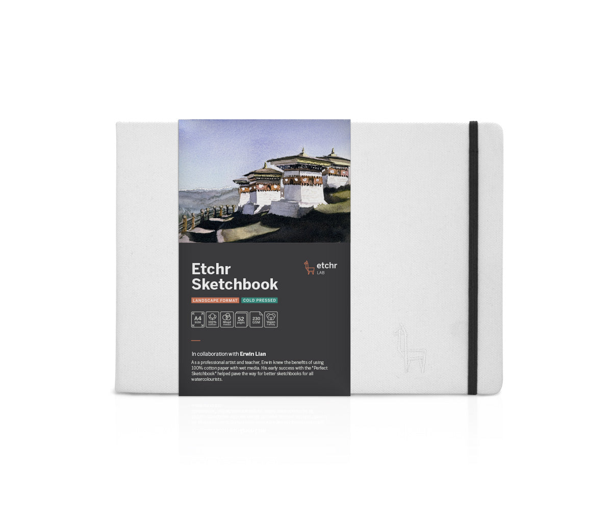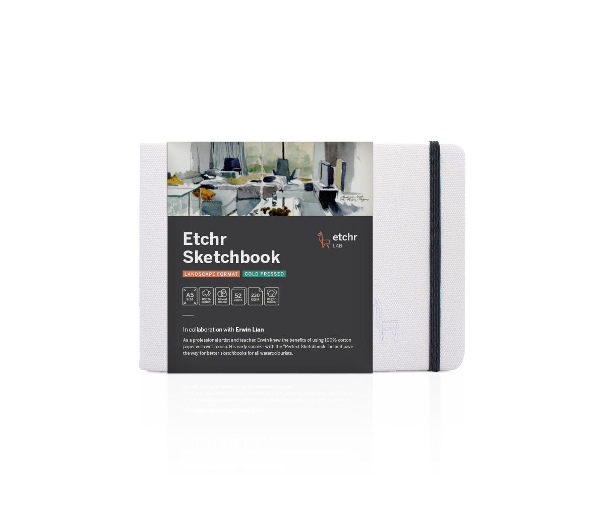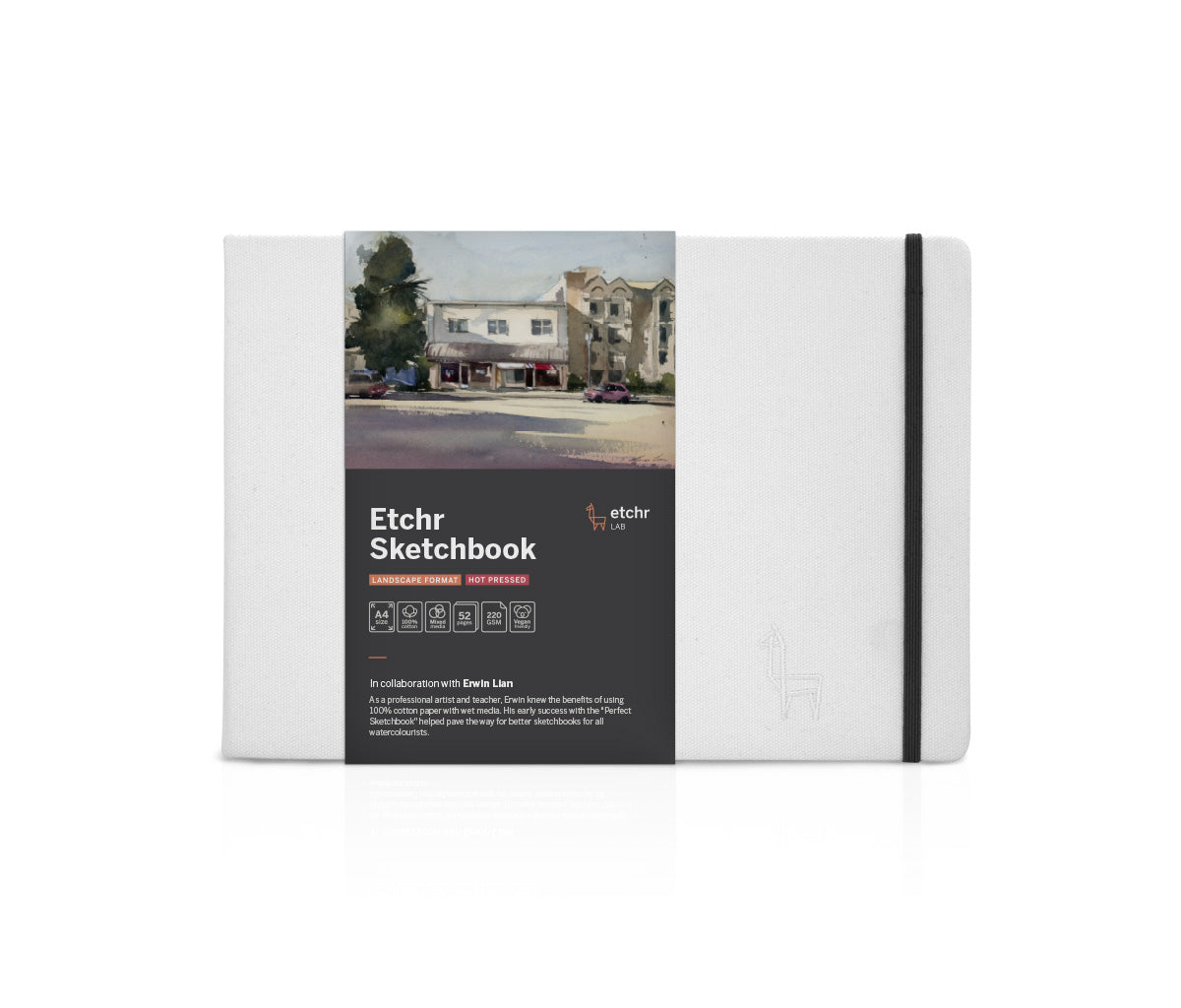 Erwin’s book used heavy weight 100% cotton acid-free paper that featured stunning hand-torn deckled edge paper and was finished with lay-flat binding for ease of use. Today, Erwin works in collaboration with Etchr - Erwin focuses on design and innovation, and the Etchr team makes the Sketchbook range available to artists worldwide.