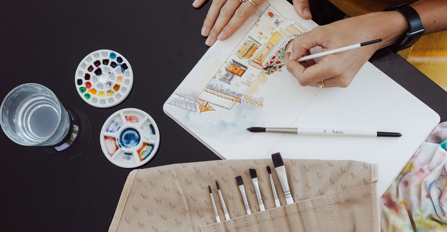 As a professional artist and teacher, Erwin understood the benefits of using 100% cotton paper with wet media. However, he was frustrated with the lack of sketchbook options on the market. So, Erwin took to crowdfunding to make his "Perfect Sketchbook" a reality. Erwin's book used heavy-weight 100% cotton acid-free paper that featured stunning hand-torn deckled edge paper and was finished with lay-flat binding for ease of use. The response was overwhelming. Today, Erwin works in collaboration with Etchr - he focuses on design and innovation, and we make these Sketchbooks available to artists worldwide.