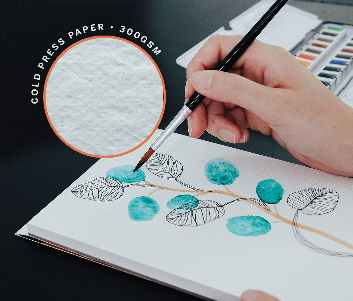 300g (140lbs) acid-free, 50% cotton cold press paper.