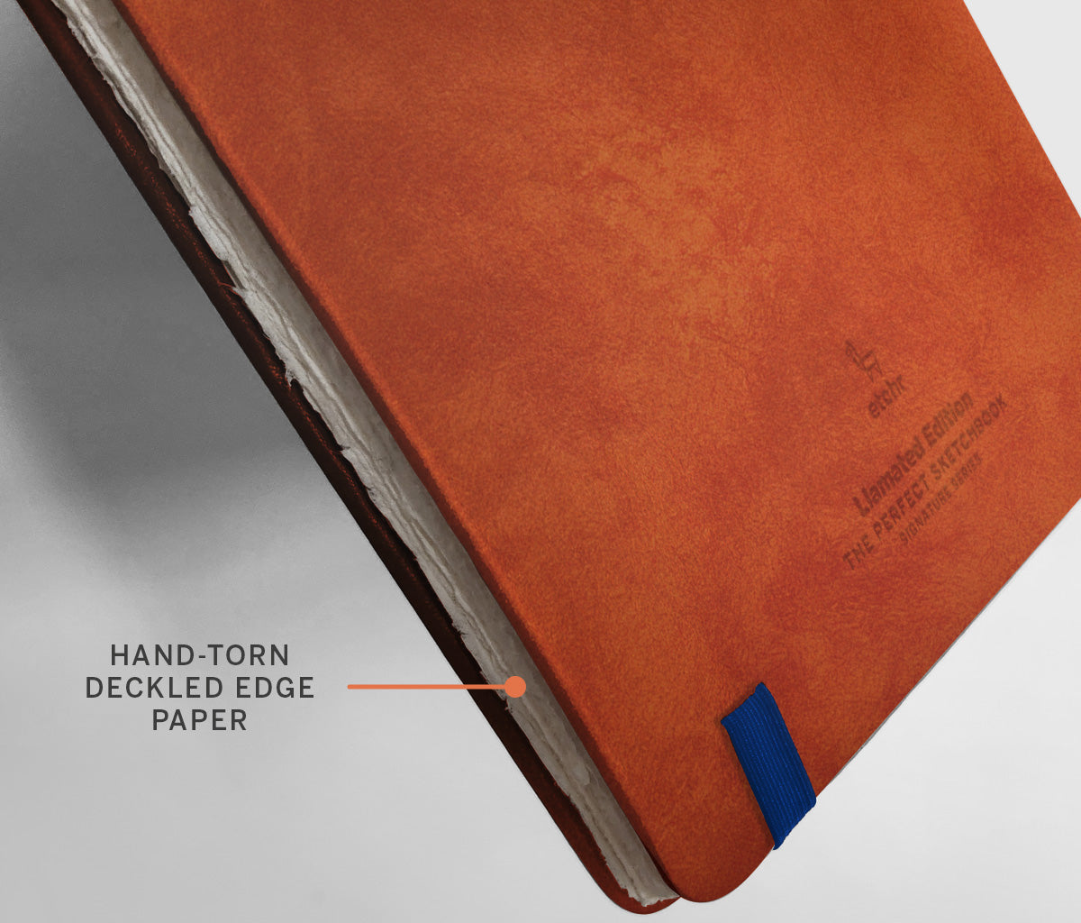 Building on the popularity of our original "The Perfect Sketchbook Signature Series" sketchbook, made with Fabriano® paper, this Llamated Edition version features Arches® paper and a new Burnt Sienna / Navy colour scheme while retaining the beloved original features such as hand-torn deckled edges.