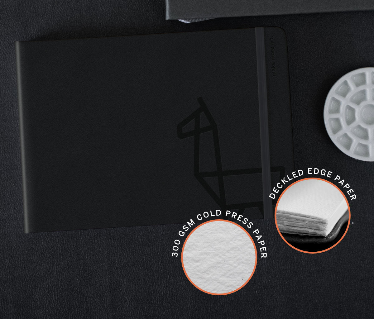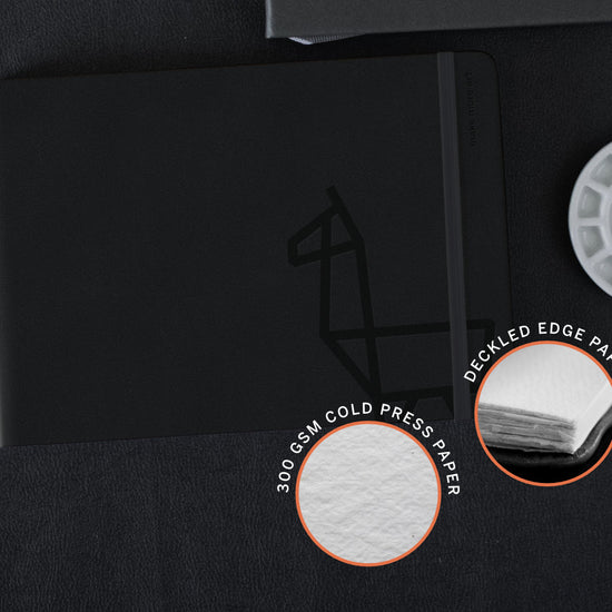 - Llamated Edition Black Sketchbook — A5 Landscape, 300gsm Cold Press, Deckled Edges