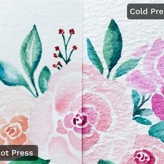 Cold press paper has a slightly textured finished, or more "tooth". It is often a go to for watercolour artists as the textured finish can provide a little more water control. It is also great for those looking to accentuate the effect of pigment granulation.