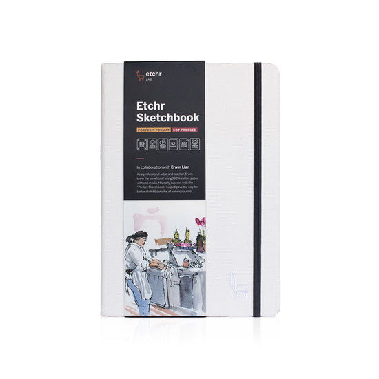 Erwin’s book used heavy weight 100% cotton acid-free paper that featured stunning hand-torn deckled edge paper and was finished with lay-flat binding for ease of use. Today, Erwin works in collaboration with Etchr - Erwin focuses on design and innovation, and the Etchr team makes the Sketchbook range available to artists worldwide.