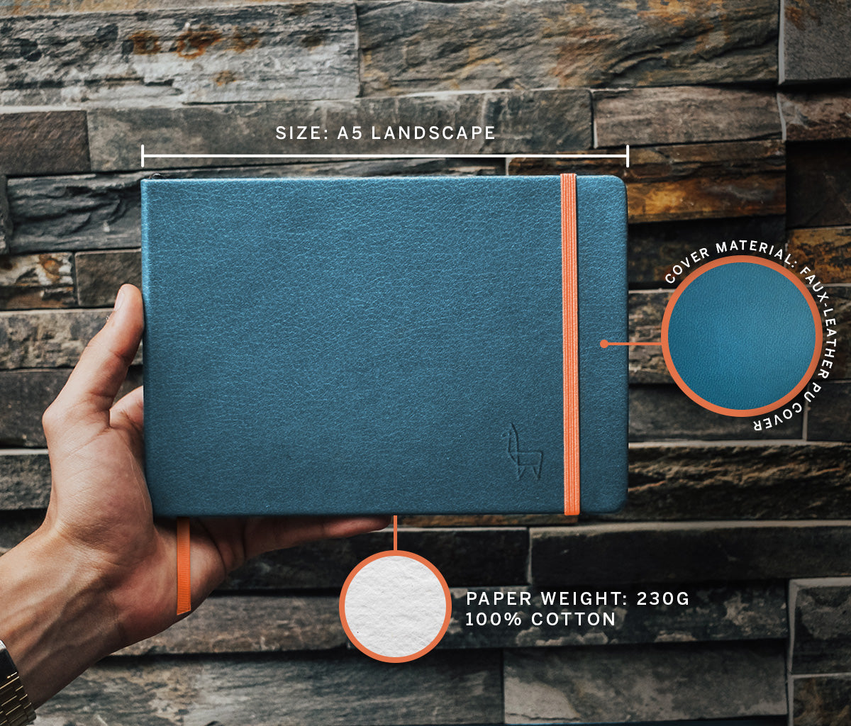 - A5 Landscape (5.8 x 8.3in or 14.8 x 21cm)