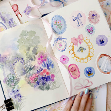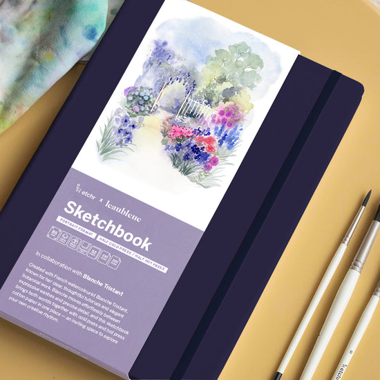Known for her elegant botanicals and thoughtful tutorials, Blanche moves naturally between expressive washes and precise detail. This sketchbook reflects that balance, combining Hot Press and Cold Press cotton paper in one book — an inviting space to explore both control and fluidity.