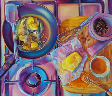 Using high-chroma oil paints and playful perspectives, Lily infuses each piece with dream-like nostalgia, inspired by her surroundings in Victoria, Australia — from nature and food to the relationships that shape her world.