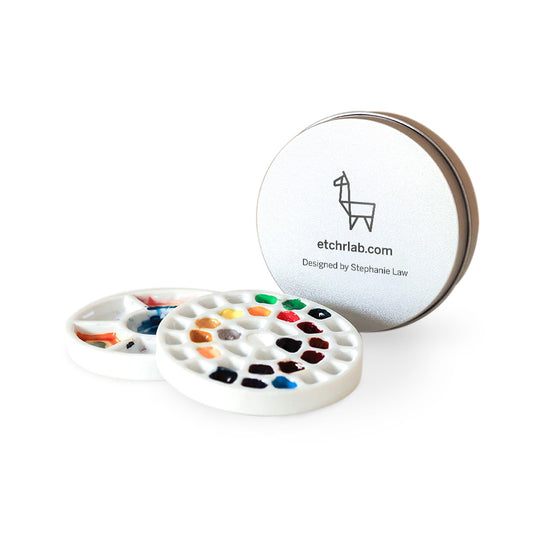 Stephanie took to crowdfunding to launch the original travel-sized porcelain 37-Well Mini Palette and, with the help of the creative community, she was able to commercially manufacture her Mini Palette for the first time. After this initial success, Stephanie partnered with Etchr to launch the Etchr Mini Palette range.