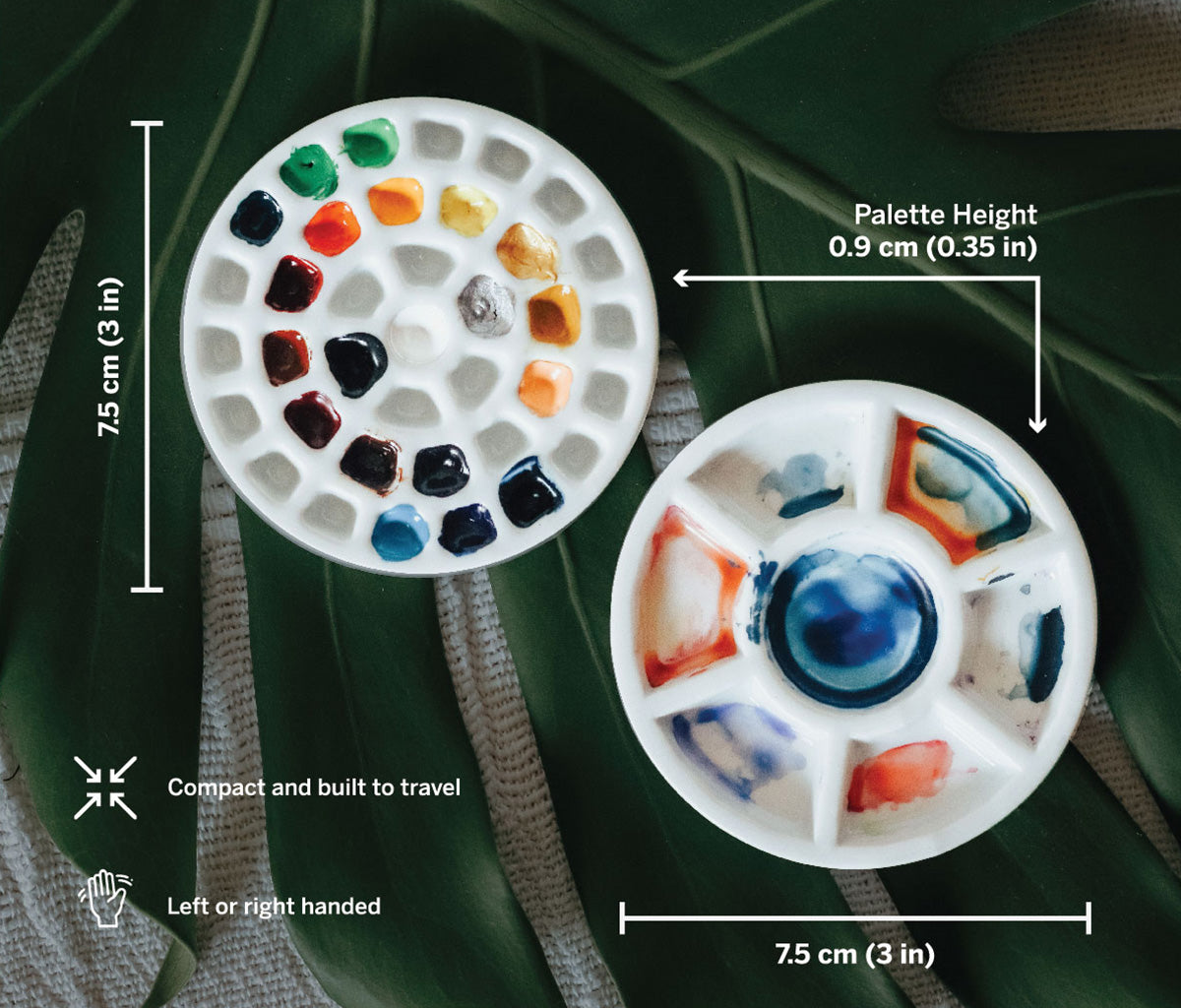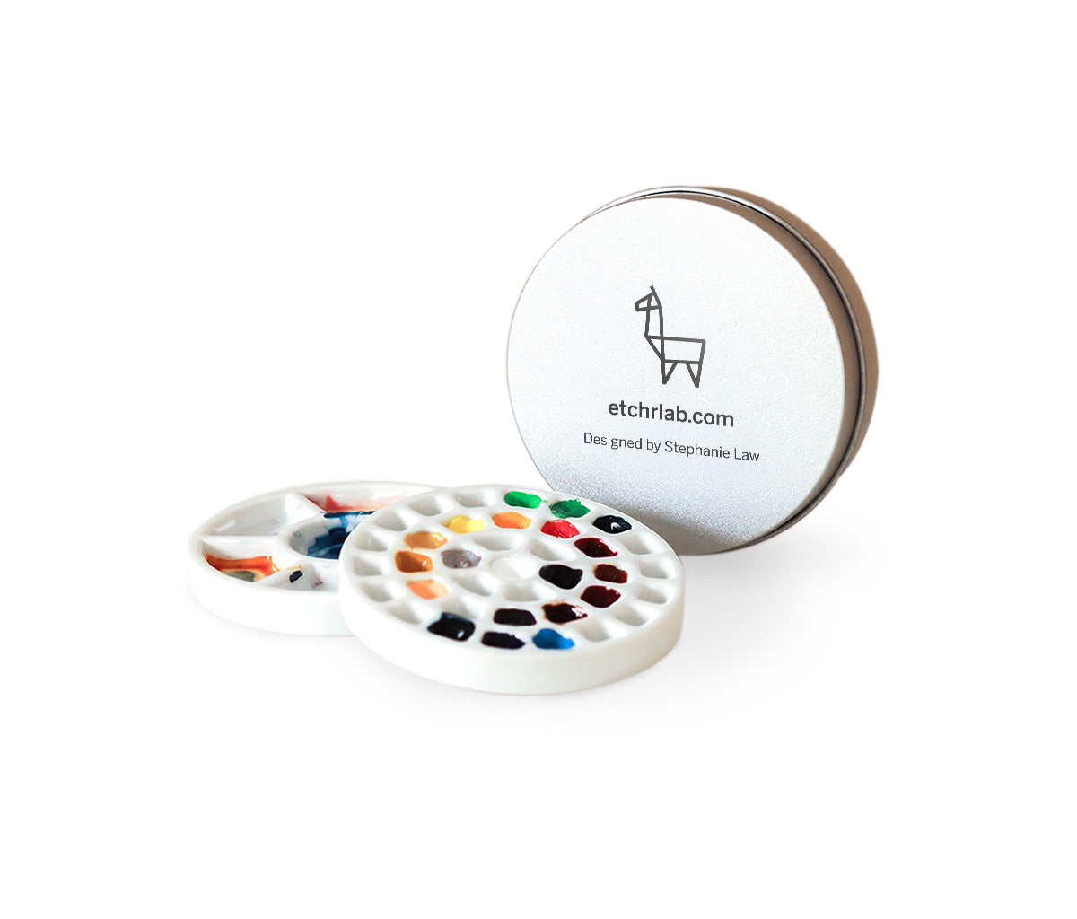 Stephanie took to crowdfunding to launch the original travel-sized porcelain 37-Well Mini Palette and, with the help of the creative community, she was able to commercially manufacture her Mini Palette for the first time. After this initial success, Stephanie partnered with Etchr to launch the Etchr Mini Palette range.