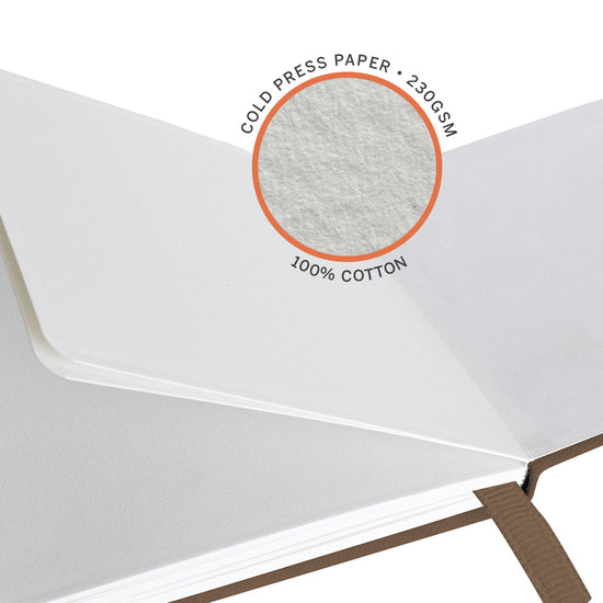This sketchbook uses 230gsm (110lbs) acid-free, artist-grade, 100% cotton cold press paper. The paper tone is traditional white.