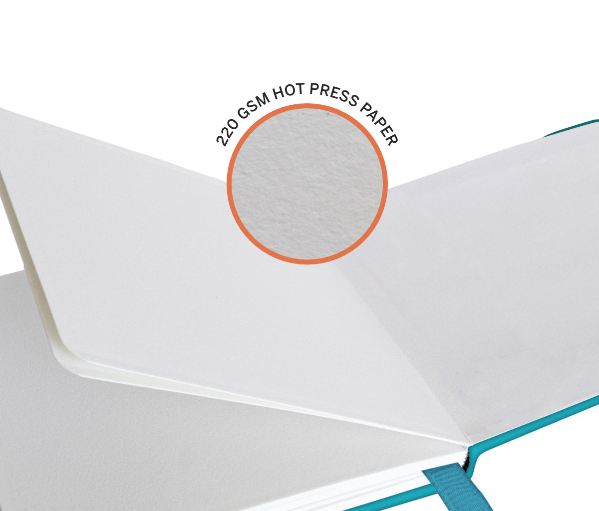 This sketchbook uses 220gsm (100lbs) acid-free, artist-grade, 100% cotton hot press paper. The paper tone is traditional white.