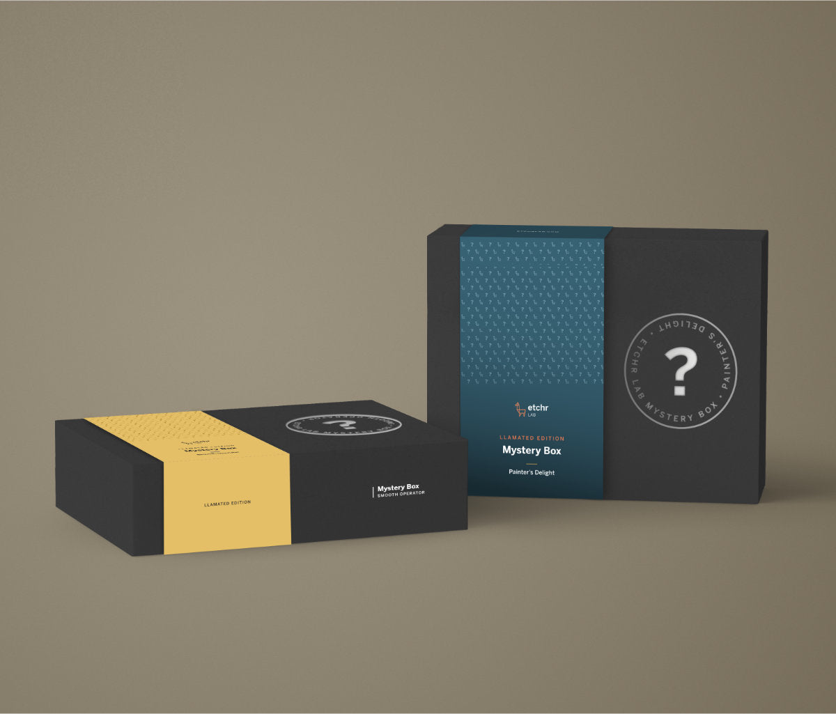These two Llamated Edition Mystery Boxes contain a bundle of Etchr products including some of our best sellers at up to 40% off! Each box is mysteriously themed and you can grab both for even bigger savings. We can't wait for the exciting unboxings.