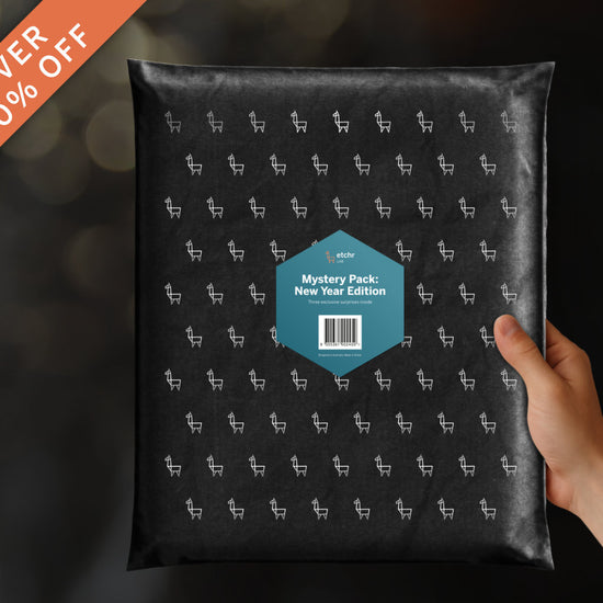 This New Year Mystery Pack brings three completely new Llamated Edition items debuting only here, paired with a selection of Etchr items to round out the experience — all at more than 40% off retail value.