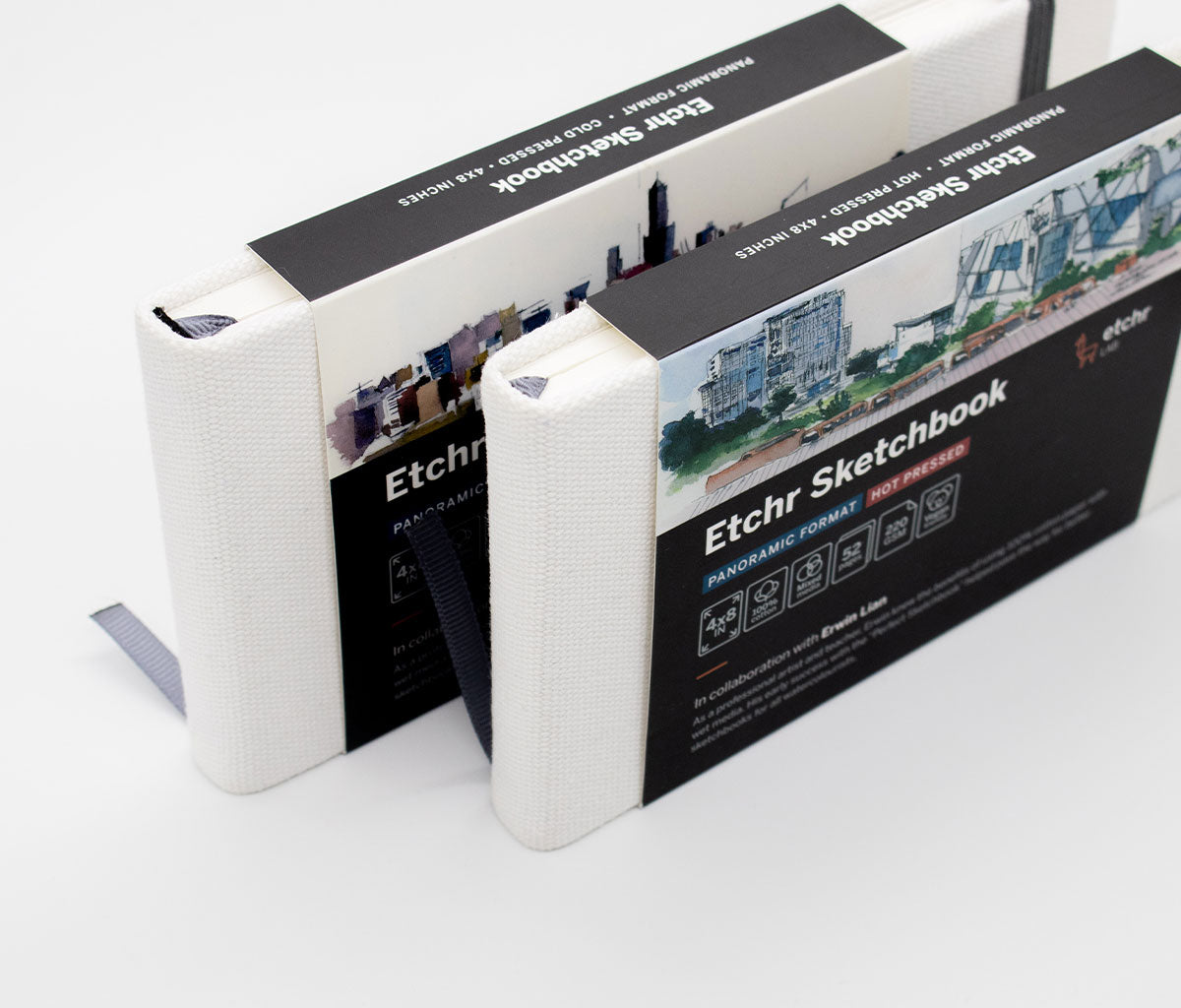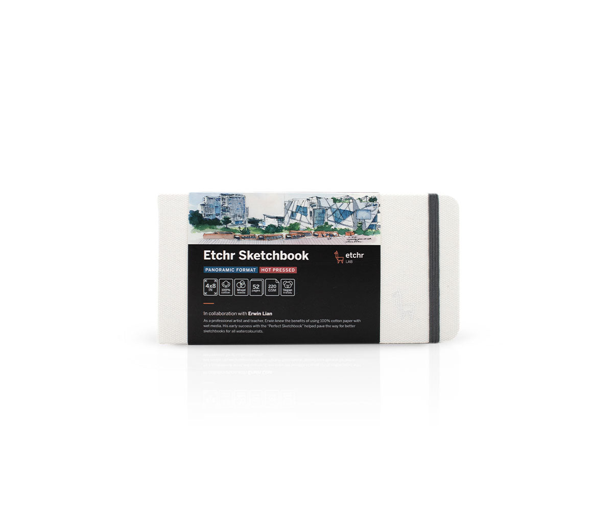 Erwin’s book used heavy weight 100% cotton acid-free paper that featured stunning hand-torn deckled edge paper and was finished with lay-flat binding for ease of use. The response was overwhelming. Today, Erwin works in collaboration with Etchr - Erwin focuses on design and innovation, and the Etchr team makes the Sketchbook range available to artists worldwide.