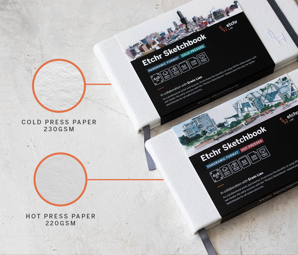 Our Sketchbook range was developed in collaboration with Singaporean artist Erwin Lian. As a professional artist and teacher, Erwin understood the benefits of using 100% cotton paper with wet-media, but was frustrated with the lack of sketchbook options on the market. Erwin took to crowdfunding, to make his “Perfect Sketchbook” a reality.