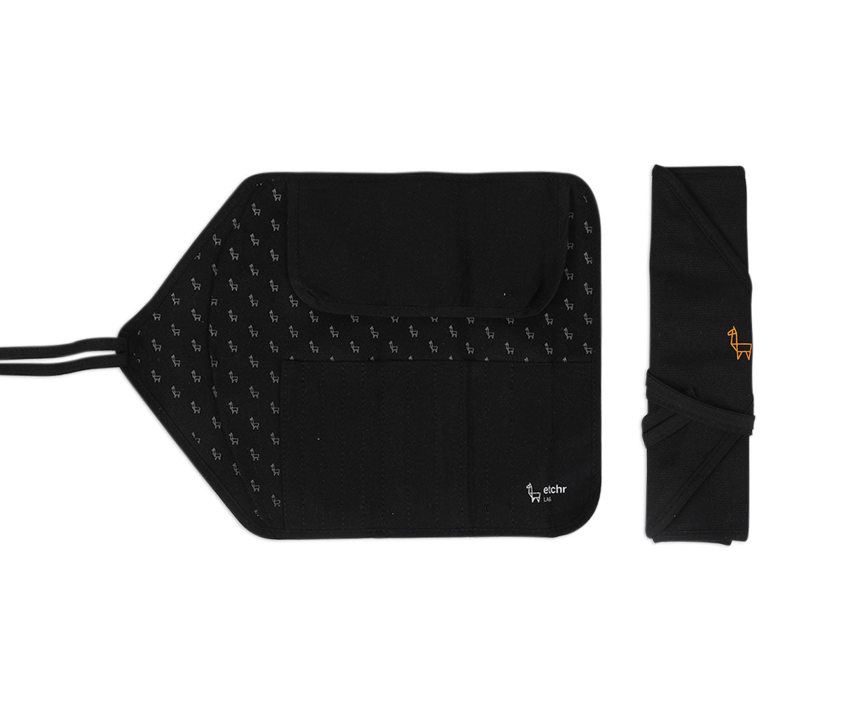 This vegan-friendly canvas brush pouch was designed by our in-house artist Ânia Marcos as a beautiful storage solution for your precious brushes. This pouch can safely store up to 10 brushes, and the lining features a subtle Etchr Lama print pattern.