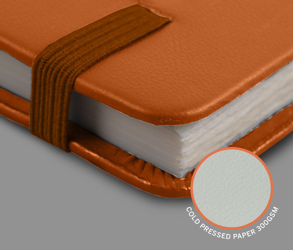 This sketchbook uses 300gsm (140lbs) archival and artist-grade, 100% cotton cold press paper from Fabriano Artistico®.