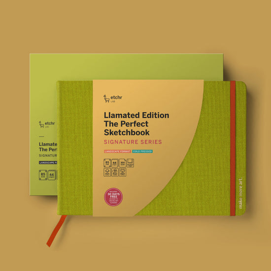 Building on the popularity of our Perfect Sketchbook Signature Series made with Fabriano® Artistico paper*, this Llamated Edition introduces a landscape format slightly larger than B5 — a layout our community has been asking for and one we’re excited to finally bring to life.