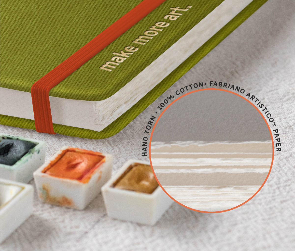 This sketchbook uses 300gsm (140lbs) archival and artist-grade, 100% cotton cold press Fabriano® Artistico paper*.