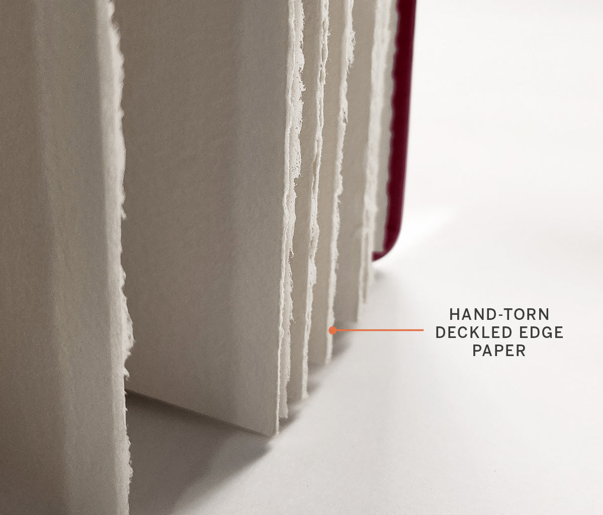 This sketchbook uses 230gsm (110lbs) acid-free, artist-grade, 100% cotton cold press paper with hand-torn deckled edges. The paper tone is traditional white.Â