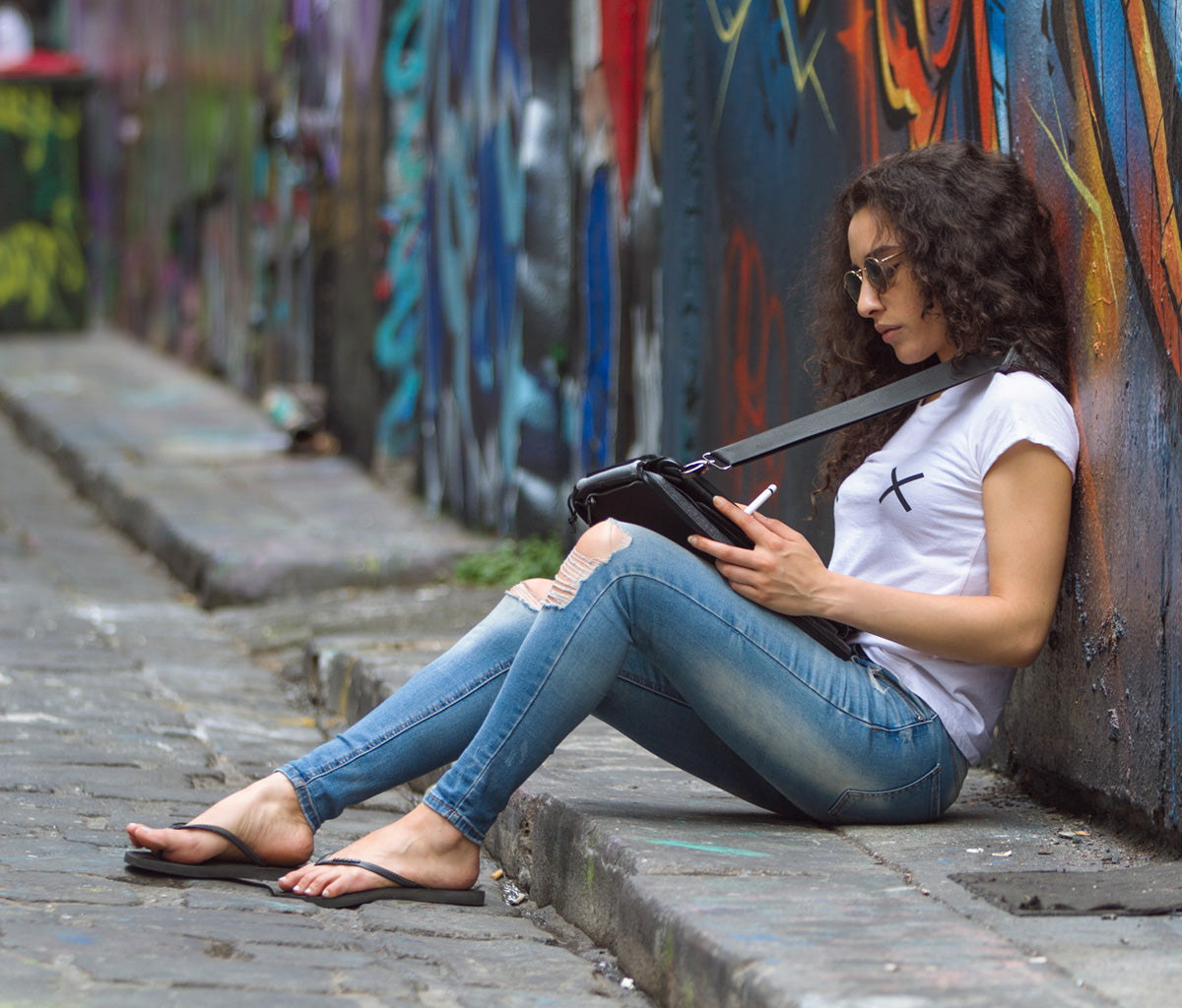 Designed by Australian artist and designer Darren Yeow (learn more below), our classic minimalist satchel is designed specifically to help digital & physical medium artists sketch on the go. Suitable for both left & right-handed artists, this bag enables you to draw while standing, walking or sitting.