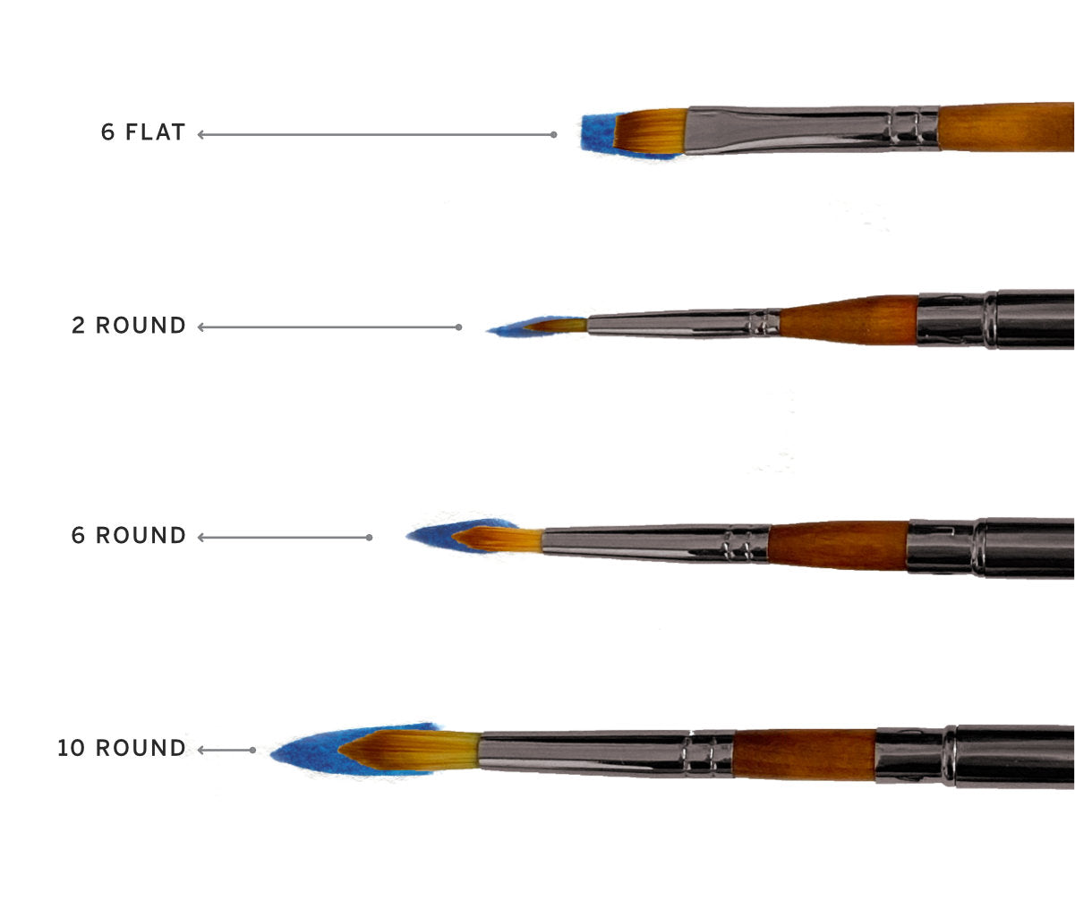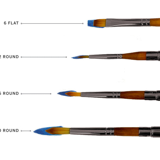 - 4 Synthetic Brush Set (Flat 6; Round 2, 6, 10)