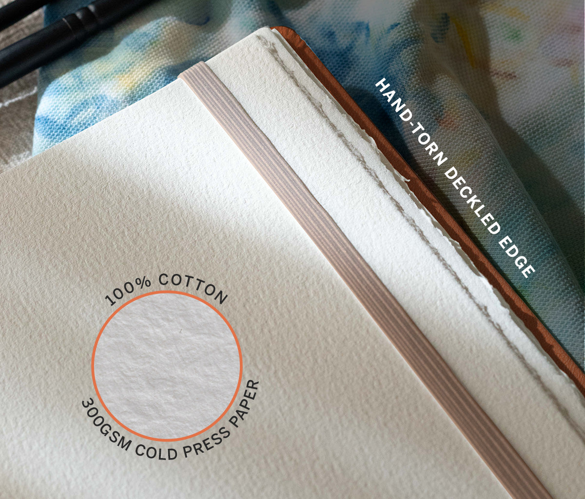 - Hand-torn deckled-edge cold press paper