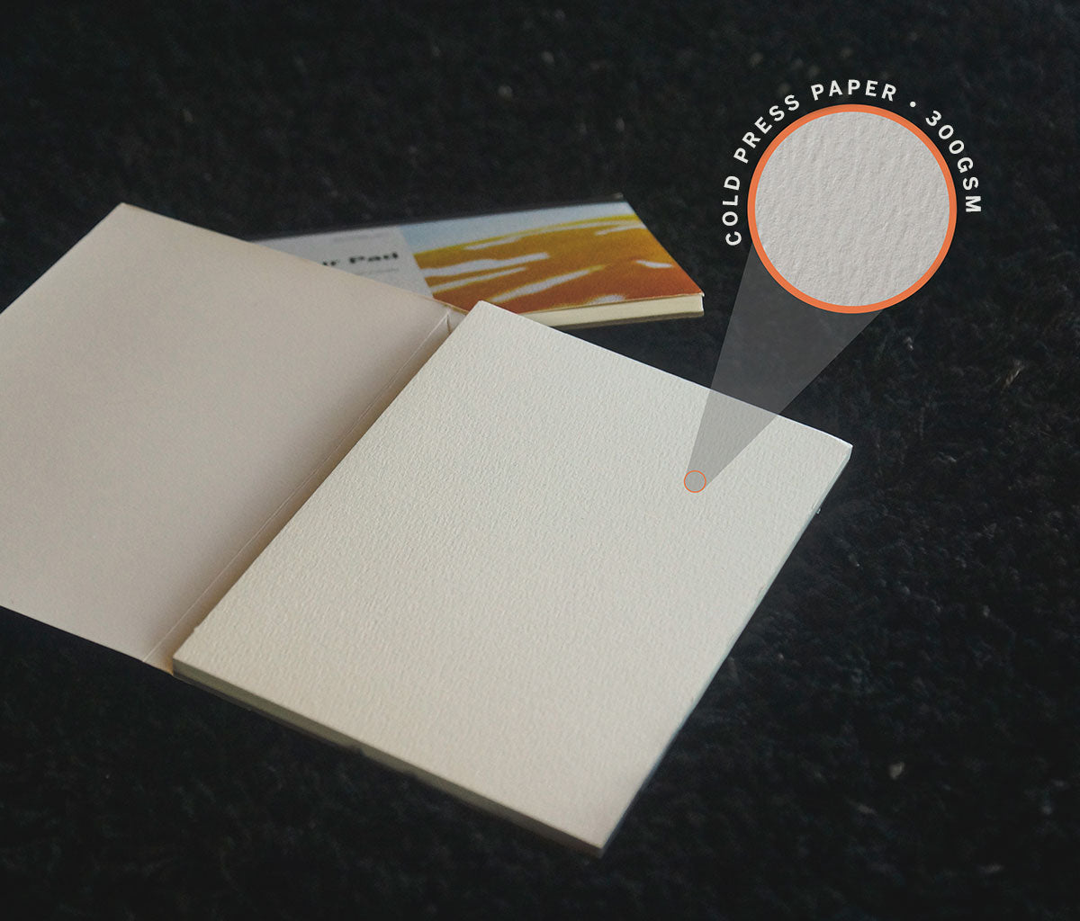 300g (140lbs) acid-free, 100% wood pulp cold press paper.