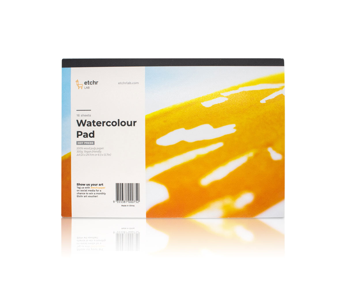 This Paper Block has 16 sheets and is glued on all four sides. This product uses 300g acid-free, 100% wood pulp hot press paper. Vegan friendly.